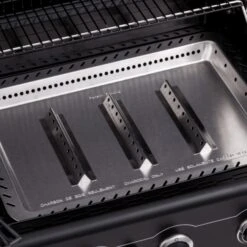- Il vassoio del carbone brevettato in acciaio inossidabile garantisce una distribuzione uniforme del calore e previene le fiammate.