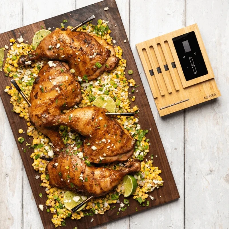 Sviluppato con tecnologia all’avanguardia combinata con un’insaziabile passione per cibi appetitosi e cucinati alla perfezione. MEATER Block è il leggendario strumento di cottura dotato di 4 sonde numerate. Bistecca rare per te, medium per il tuo ospite, medium rare per un tuo parente e ben cotta per nessuno. Clip sonda incluse.